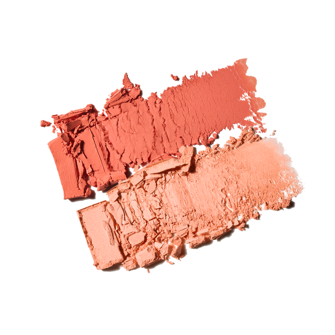 - For a multidimensional effect, start by applying the lighter cream blush to achieve a natural glow and then apply the deeper shade of powder blush for contouring and intensified dimension.