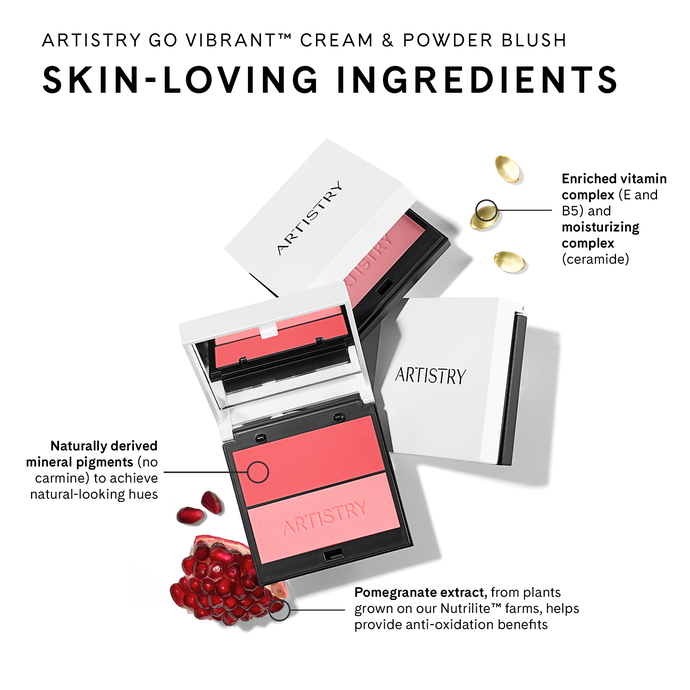 All Artistry Go Vibrant Cream & Powder Blushes are formulated without carmine red – a red pigment commonly used in makeup products that is derived from insects (not considered vegan). This product is registered with The Vegan Society.