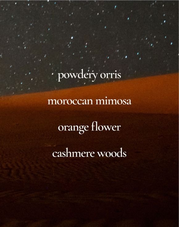 Feel the excitement with notes of orange flower and powdery orris, dancing with blooming Moroccan mimosa and creamy cashmere woods.
