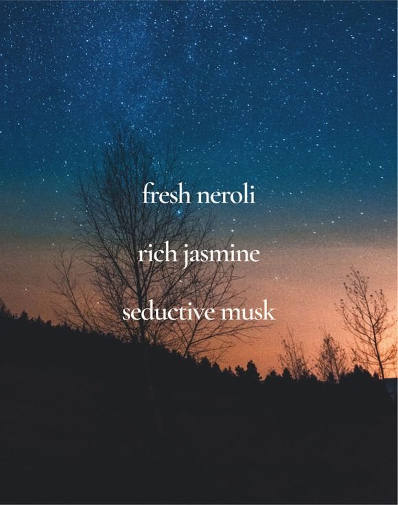 An enigmatic, sultry mix of fresh neroli, rich jasmine and seductive musk.